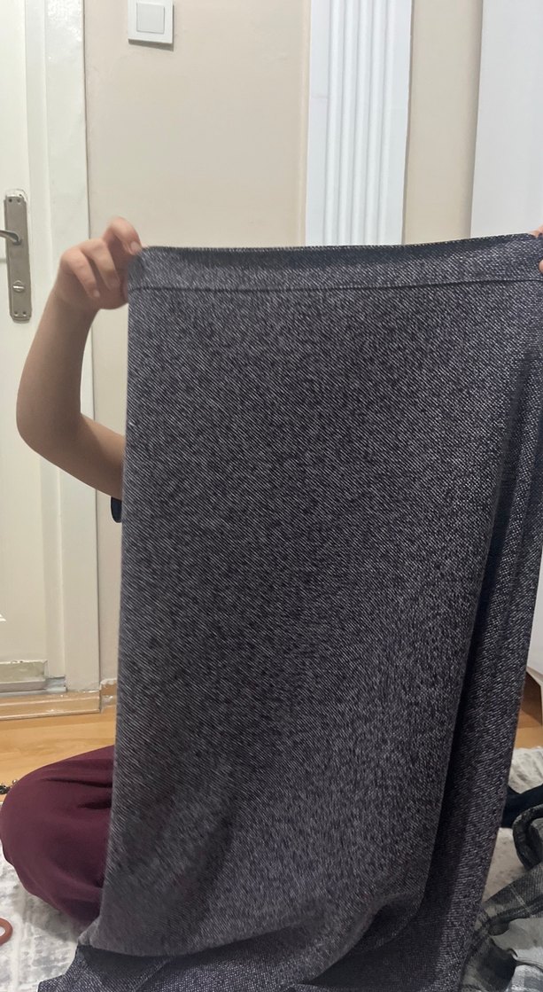 Yumuşak sentetik kumaştan, bol kesim gri midi hamile eteği, rahat kullanım için drapeli tasarıma sahip.