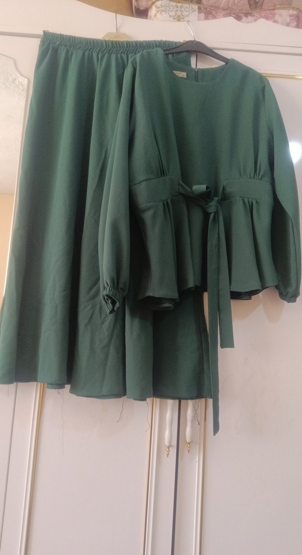 Diger marka kadınlar için uzun kollu, yuvarlak yakalı, pilili tasarıma sahip yeşil elbise. Yumuşak sentetik kumaştan, günlük kullanıma uygun.