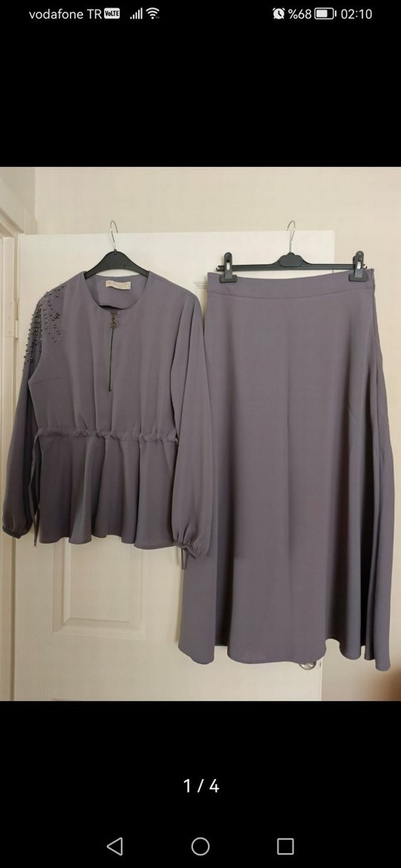 Gri renkte, uzun kollu, piliseli ve bol kesim kadın elbisesidir. Yumuşak sentetik kumaştan üretilmiş, gündelik kullanıma uygundur.