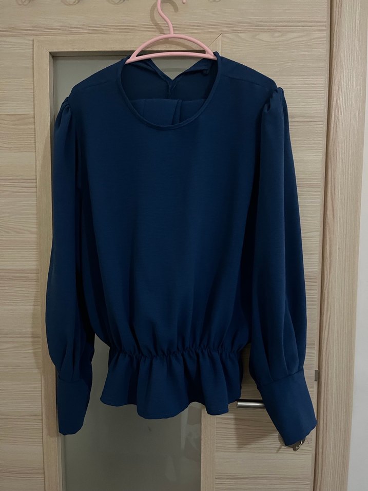 Etekli takım Mavi keten kumaştan, yuvarlak yakalı ve uzun kollu, bol kesim kadın bluz. Etek kısmında fırfır detayı bulunan sade ve günlük kullanıma uygun parça.