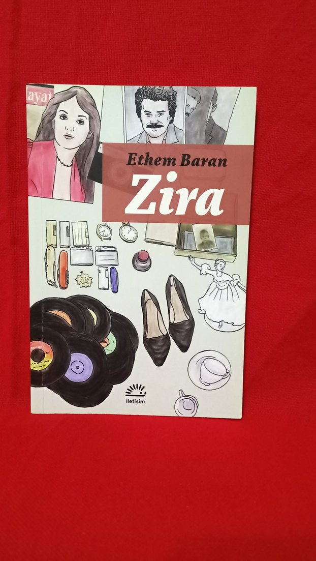 Ethem Baran'ın Zira adlı romanı, derin karakterler ve toplumsal temalar içerir. Kapakta portreler, ayakkabılar ve plaklar yer alıyor. Kitap orjinal bandrollü ve sıfır ayarında