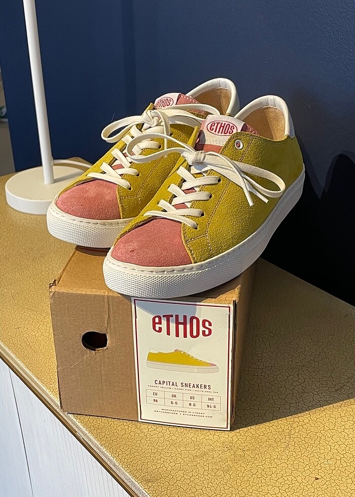 Evde 1 kere denendi. 39 numara. Ankara merkezli el üretimi ayakkabı. Aşırı rahat. Ethos’un kendi sitesi ya da Hipicon üzerinden alabiliyorsunuz. Güncel fiyatı 3.450 tl fotoğraftaki gibidir. Kutusu ile gönderilecektir. (Vans markası temsilidir, markanın adı Ethos)