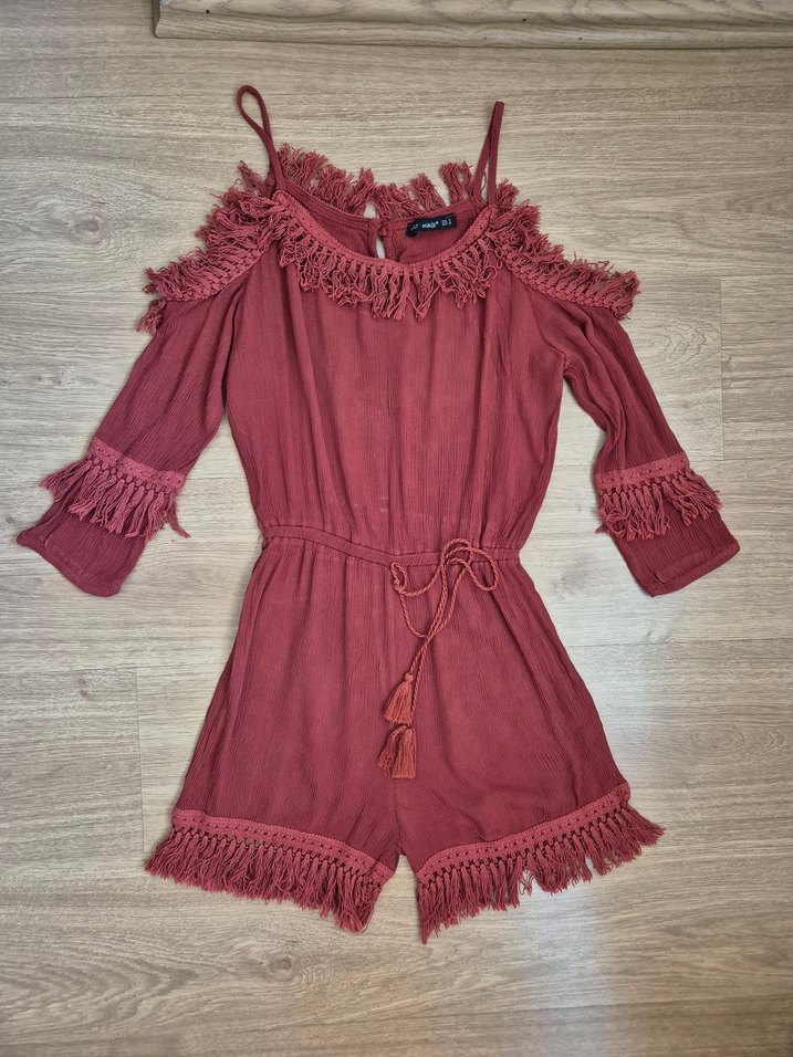 etika s beden şortlu tulum tarçin rengi 1 kere kullanildi kusuru yok. püskül detaylıdir. boy 80 cm iki koltuk arasi 48 cm.
