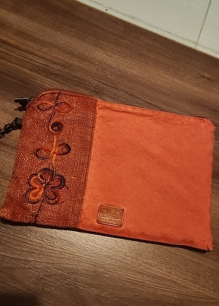 sıfır ürün Keten el işlemeli mercan rengi tablet çantası olarak da kullanılabilir.