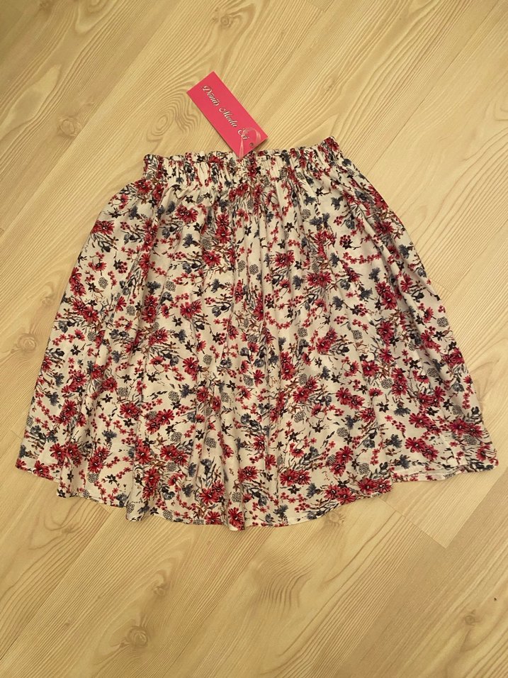 DÖNÜŞ MODA EVİ ETİKETLİ, BELİ LASTİKLİ OLDUĞUNDAN M-L-XL BEDENLERE UYGUN,TİRİL TİRİL HARİKA 1.SINIF KALİTE PENYESİ OLAN,ÇİÇEKLİ KLOŞ ETEK. BELDEN İTİBAREN BOYU 53, BEL 26 cm. LASTİKLİ OLDUĞUNDAN 53 cm.ye KADAR AÇILIYOR. TERTEMİZ HİÇBİR DEFOSU KUSURU SORUNU YOKTUR