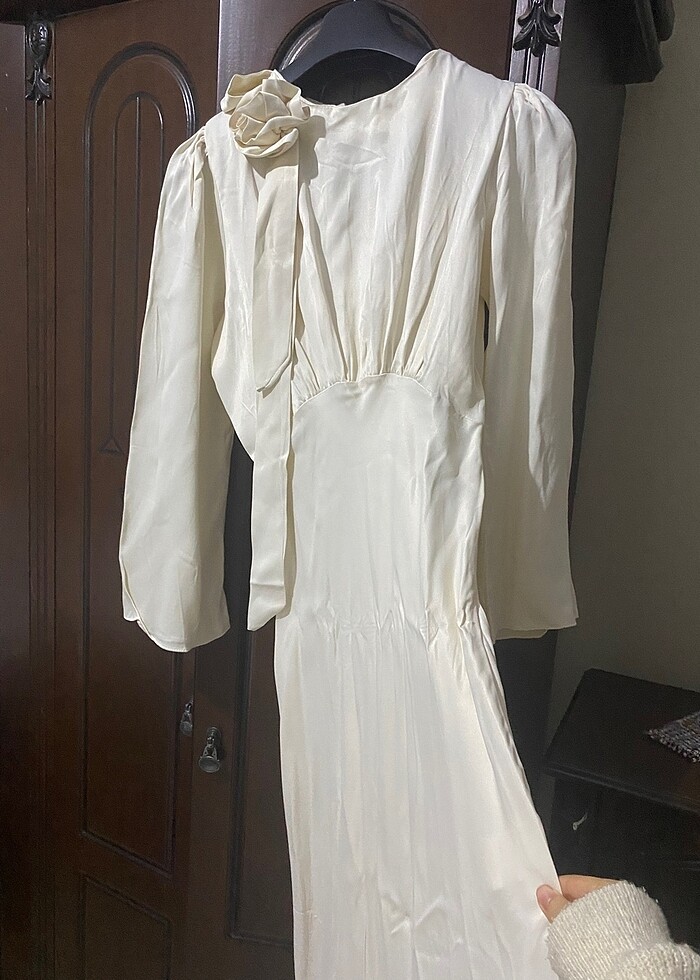 Nikah tarihimiz ertelendiği için elimde kaldı. O yüzden satmak istiyorum. Elbiseyi aldığım zaman sadece denemek için giymiştim fotoğrafını bulunca size atarım. Sitede sattığım yeşil elbisenin kırık beyazı krem gibi rengi