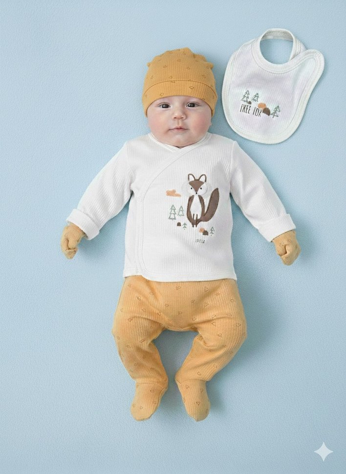 Etiketli Sıfır 5li Tilki Konseptli Pamuklu Hastane Çıkışı