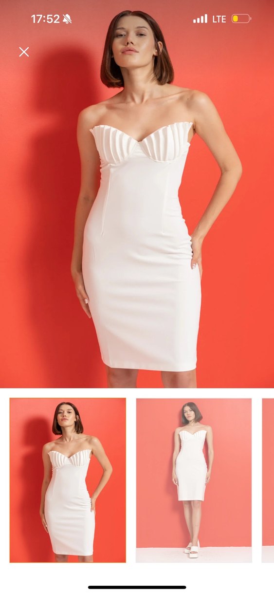 Ürünün iadesini geciktirdim hiç kullanmadım vücuduma olmadı etiketli duruyor Beyaz, straplez, midi boyda, kalem kesim elbise. Modern klasik tasarımlı, pürüzsüz sentetik kumaştan, düğünler için zarif ve şık.