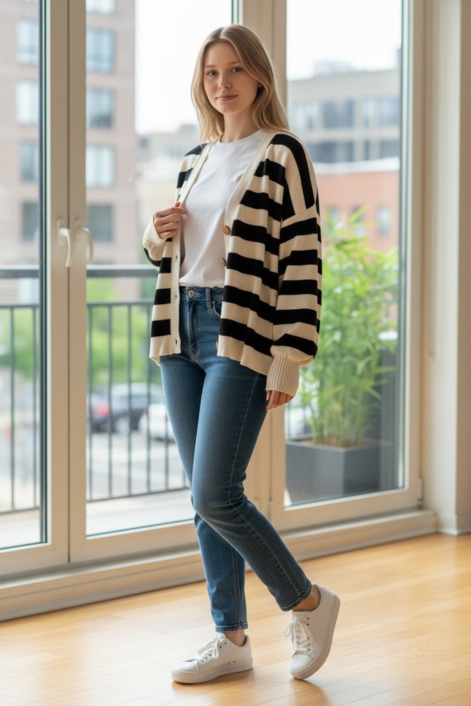 Etiketli Zebra Desenli Bol Kesim Kadın Hırka