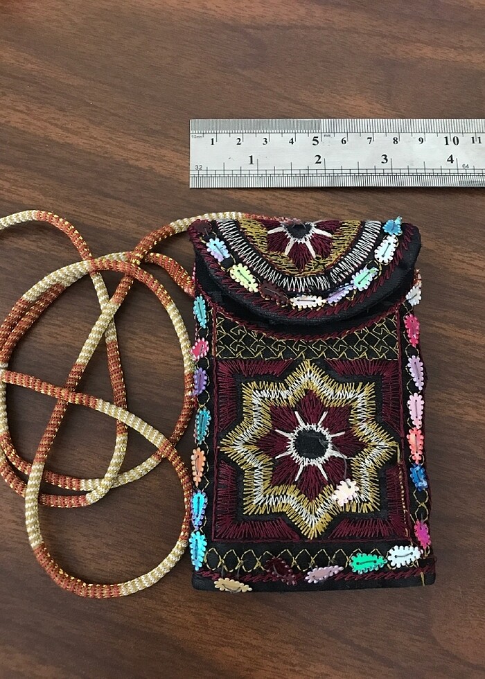 8x13 cm. Bozuk para veya sigaralık olarak kullanılabilir. Kumaş etnik desenli cüzdan