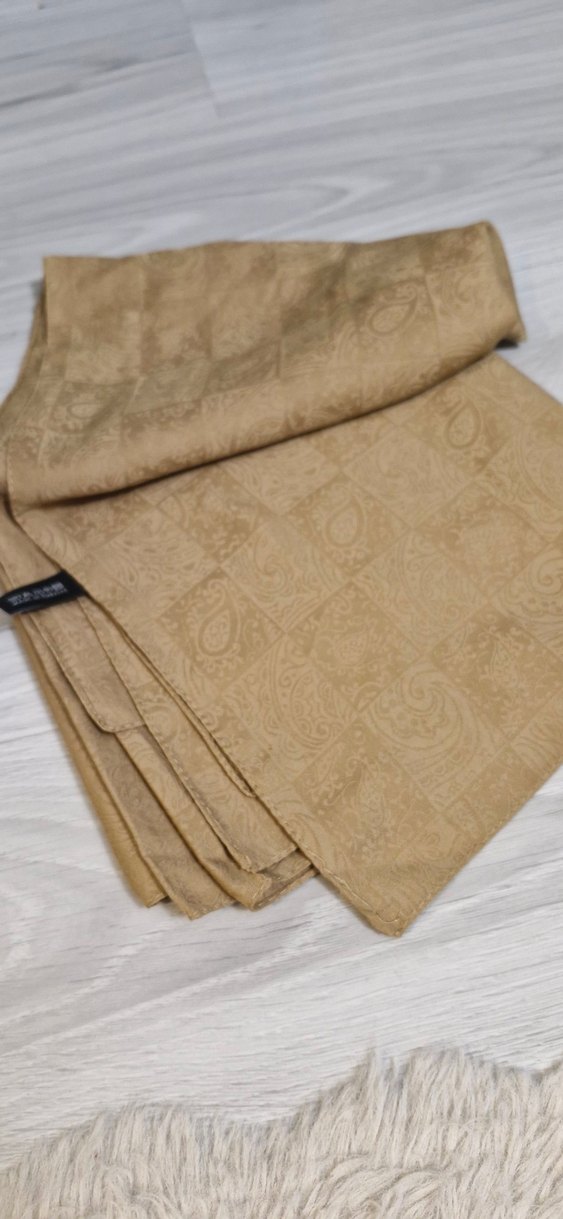 Bal köpüğü renkli, saten dokulu, hafif parlak ve dökümlü bohem tarzda kadın şalı, rahat ve mütevazı bir görünüm sunar.