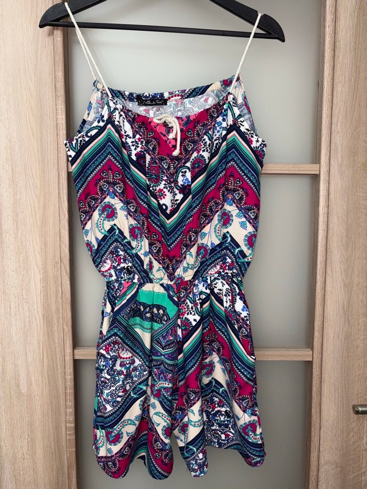 Ürün L beden, beli kendinden lastikli, ip askılı, sağ ve sol kısmında iki adet cep mevcut, etnik desen şortlu tulum, bedenime küçük geldiği için satıyorum