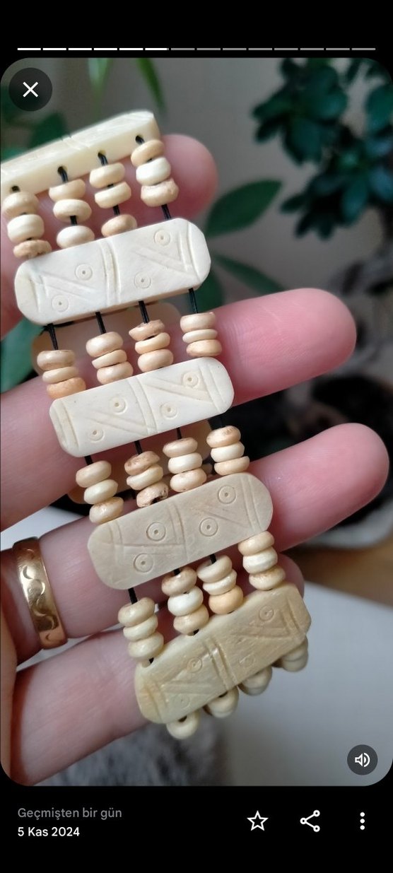 Etnik desenli beyaz ve açık bej boncuklardan oluşan bohem tarzda bileklik, günlük kullanım için uygundur.