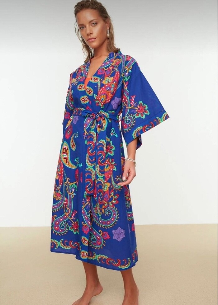 Etnik desenli kimono