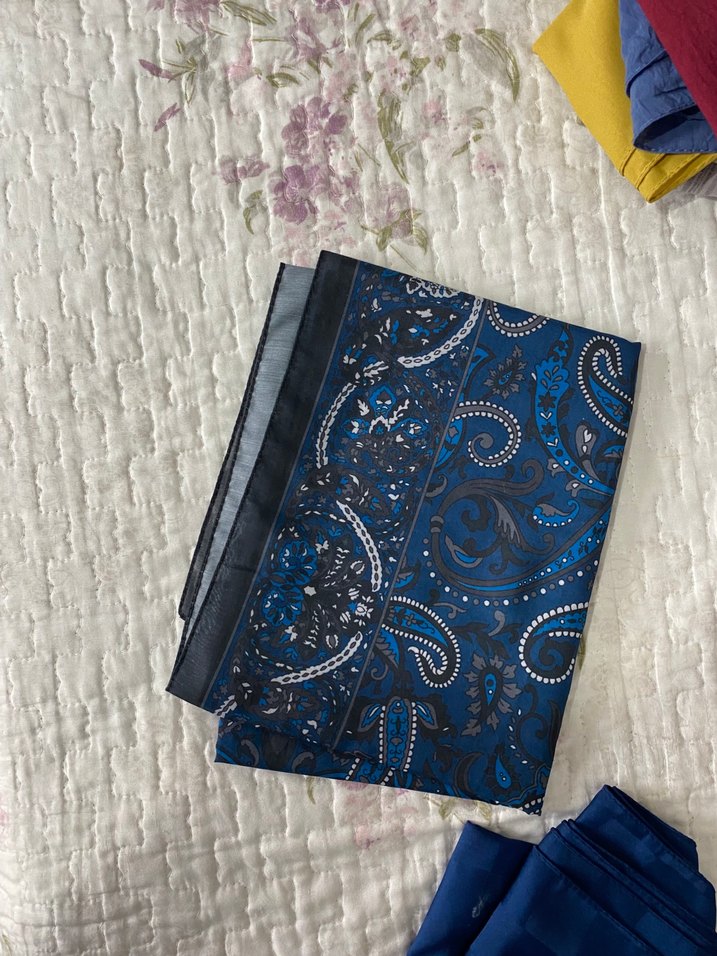 Dantel detaylı, koyu mavi renkli kadın şalı. Bohem tarzda, modest tasarıma sahip, yumuşak sentetik kumaştan yapılmıştır. Çok az kullandım defosu vs. yok.