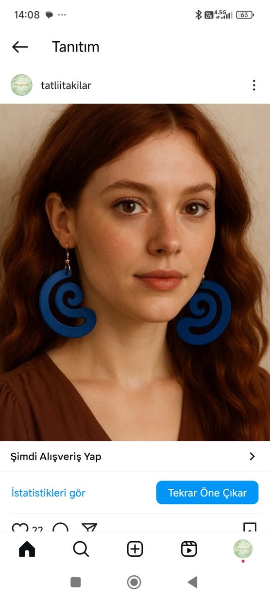 Etnik desenli, midi uzunlukta koyu mavi bohem tarzda küpeler, romantik akşamlar için zahmetsiz şıklık sunar.