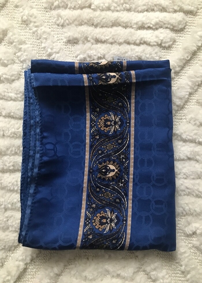 Etnik desenli şal. Kenar dikişlerinde bazı hatalar mevcut.çokta belli olmuyor