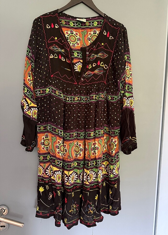 Siyah Hindistan üretimi tiril tiril bir elbise, kumaşı çok güzel, birkaç kez ancak giyildi kusursuz, bedensiz salaş elbise #koton #zara #mango #massimo #etnik #hintkumaşı #elbise