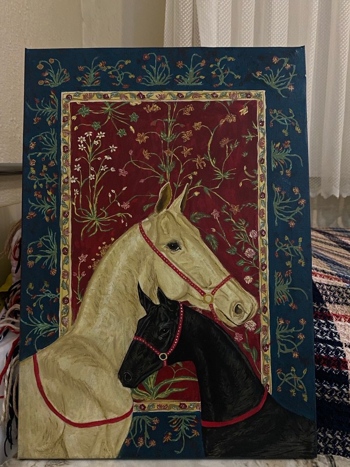 Etnik Halı Desenli At Figürlü El Yapımı Tablo