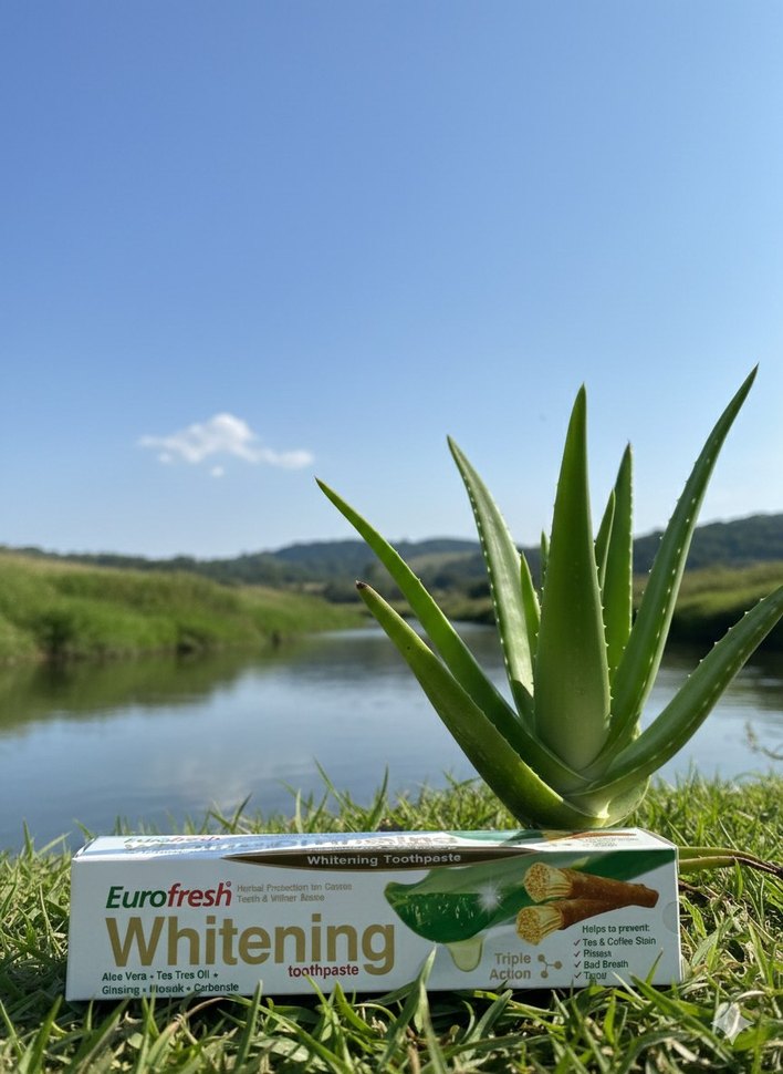 Eurofresh Beyazlatıcı Diş Macunu Aloe Vera ve Çay Ağacı Yağı ile leke oluşumunu önler, ferahlatıcı etki sağlar. 50 gr