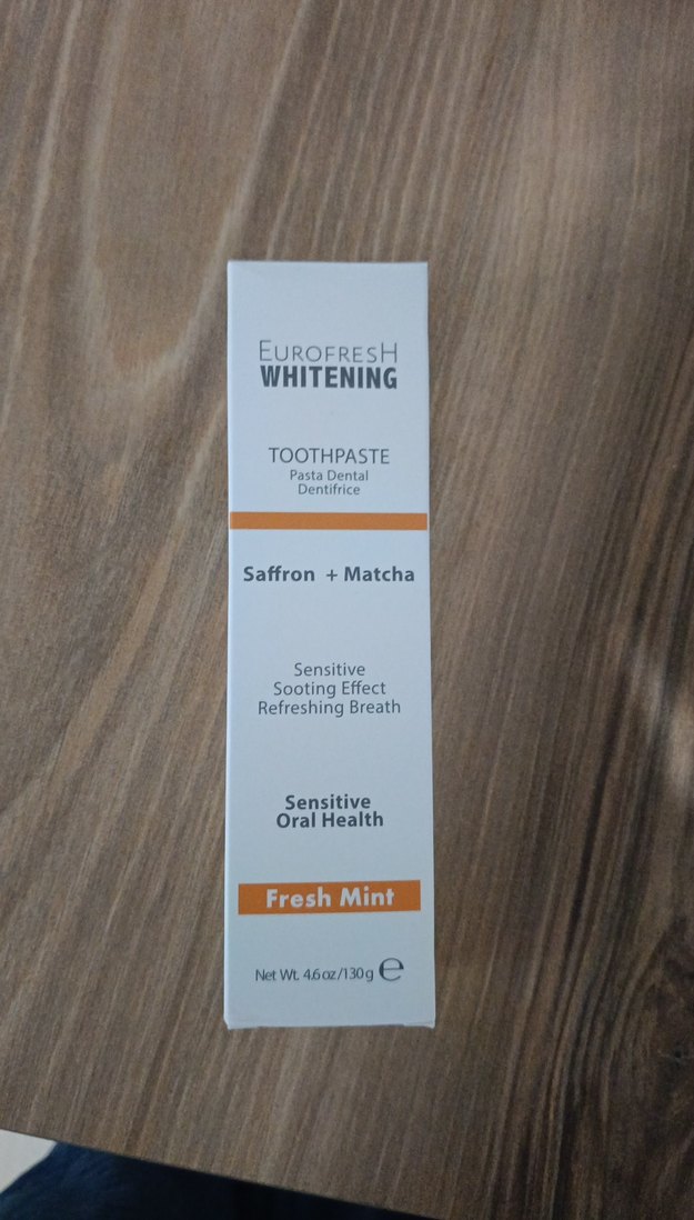 EUROFRESH beyazlatıcı diş macunu, taze nane aroması ile hassas ağız bakımı ve ferah nefes sağlar. Safran ve matcha içerir.