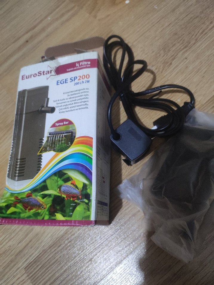 EuroStar EGE SP200, 200 L/saat kapasite ve 2W güce sahip iç filtre, akvaryum suyunu temiz tutar.