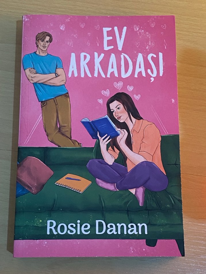 Rosie Danan'ın Ev Arkadaşı adlı romanı, ilişkiler ve kişisel gelişim üzerine bir hikaye sunuyor. Kapakta bir kadın kitap okuyor, yanında bir adam duruyor.
