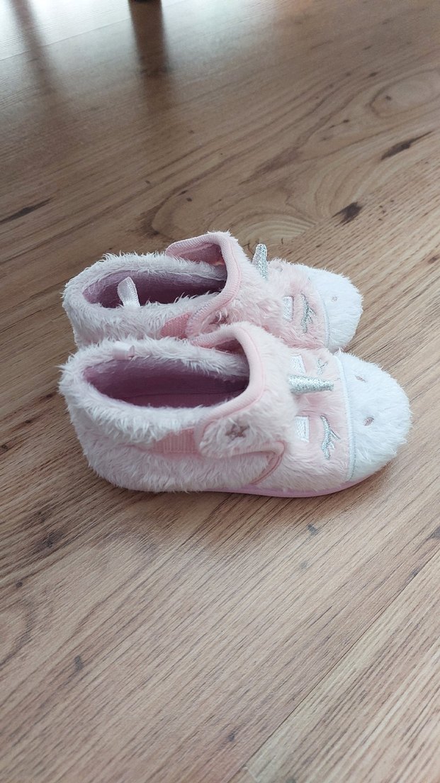 Kızlar için pastel pembe renkli, nakışlı ve kürk detaylı yumuşak ve sıcak terlikler. İç mekan kullanımı için rahatlık sağlar. 1 kere giydi bedeni uymadı