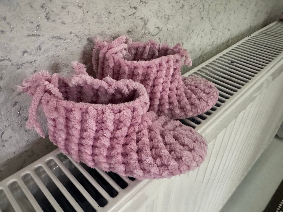 Kızlar için pembe örgü sıcacık ev terlikleri, yumuşak dokulu ve pastel tonlarda, bohem tarzda rahatlık sağlar. 22-23 numara