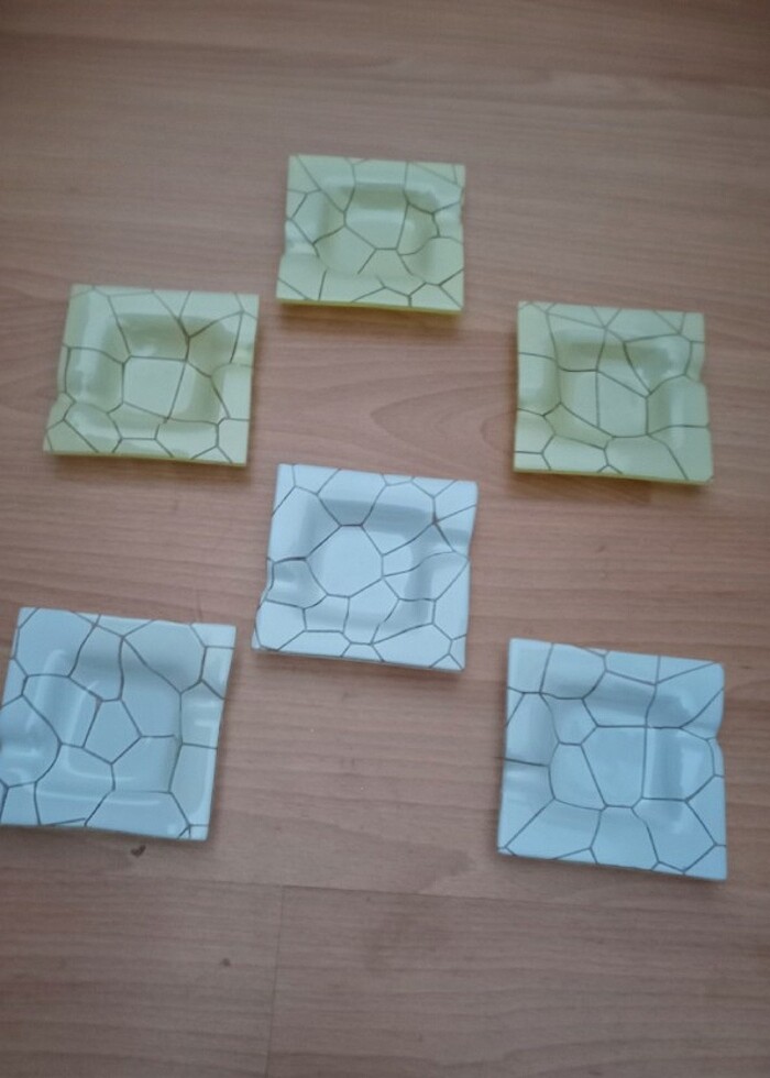Ev dekorasyonu üçü beyaz üçü krem renk altılı cam set.Çay tabağı yada kül tablası olarak kullanılabilir.