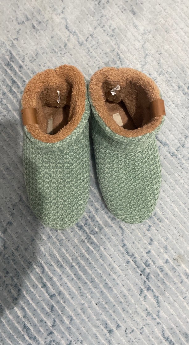 Pastel yeşil örgü kız çocuk terlikleri, yumuşak ve sıcak iç astarıyla konfor ve sıcaklık sağlar. Hiç kullanılmadı ürünün oembes de var