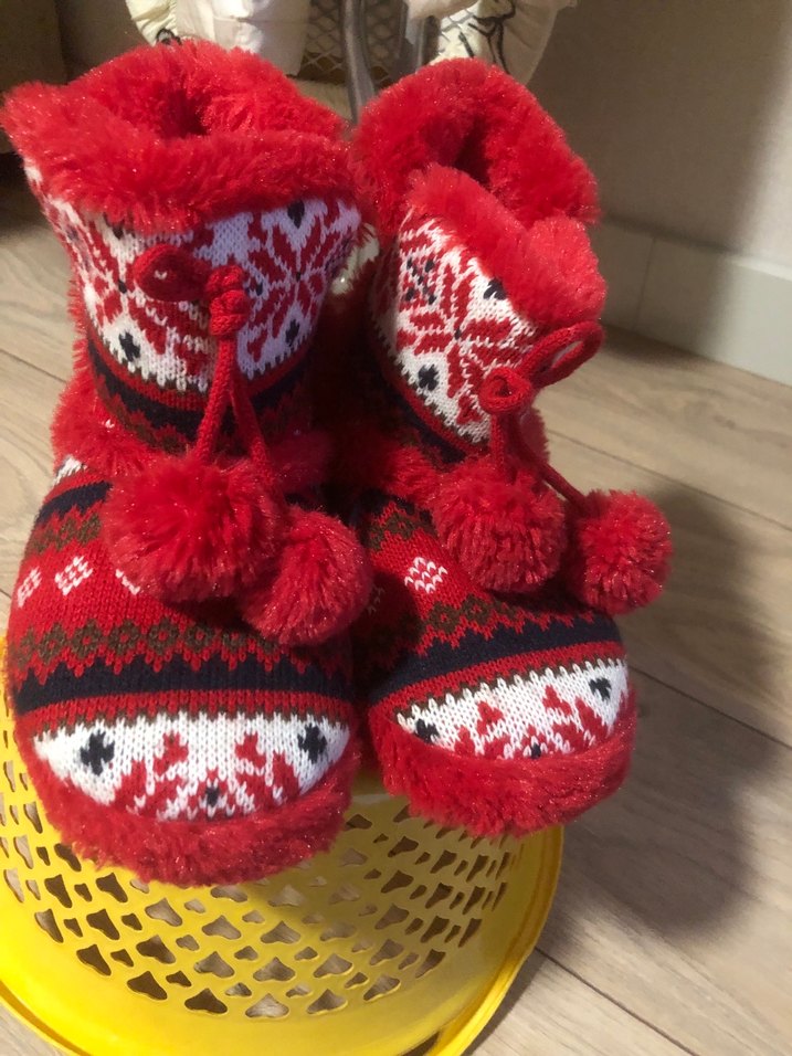 Kızlar için nakışlı desenlere sahip renkli örgü ev terlikleri, yumuşak ve sıcak kumaşla süslenmiş ponpon detayları içerir.