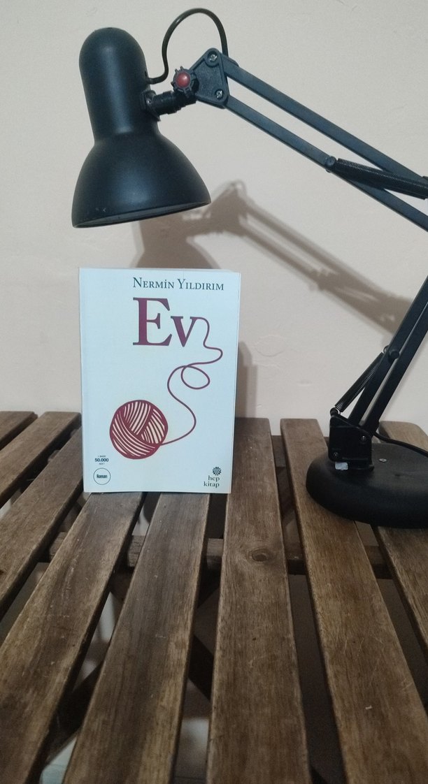 Nermin Yıldırım'ın "Ev" romanı, ev ve aidiyet temalarını işliyor. Kapakta bağlantı ve sıcaklığı simgeleyen bir yün topu yer alıyor.