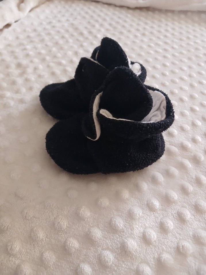 siyah polar botlar, çıtçıtlı 3 kademeli bilek boyu vardır. birqz toplama yapmış maalesef.12-18 aya uygundur kaymaz taban ve bebeğinizin ayaklarını sıcacık tutan bir kumaşa sahip