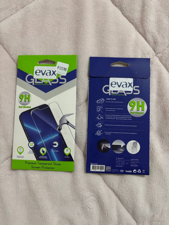 Evax marka, 9H sertlikte mavi tonlu temperli cam ekran koruyucu. Çizilmelere ve darbelere karşı güçlü koruma sağlar. Kolay kurulum talimatlarıyla birlikte gelir. 2 adet fiyatıdır. İphone 13-13 Pro için