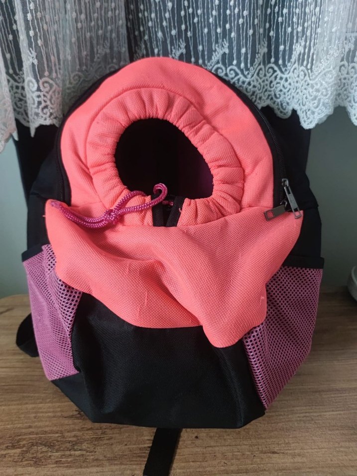 Pembe renkli kedi-köpek taşıyıcı, nefes alabilen yan file cepler ve ayarlanabilir kapüşon içerir. 4 kg ve altı hayvanlarınız için uygun benim köpeğim 5kgken sığmadı kullanamadığım için satıyorum