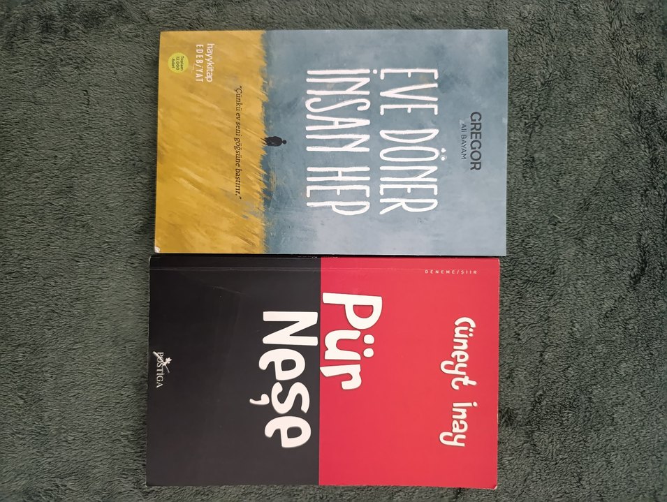 Gregor'un "Eve Döner İnsan Hep" ve Cüneyt İnay'ın "Pür Neşe" romanlarından oluşan kitap seti.