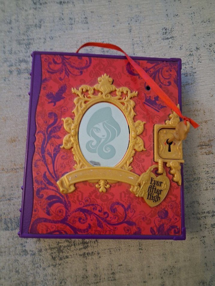calışır durumda sifreli günlük.günlük defteri karalanmış.kartonlardan biri kopuk.temiz deformasyon yoktur.Ever After High hikaye kitabı, altın çerçeve ve kilit detaylı süslü kapakla sunulmuştur.