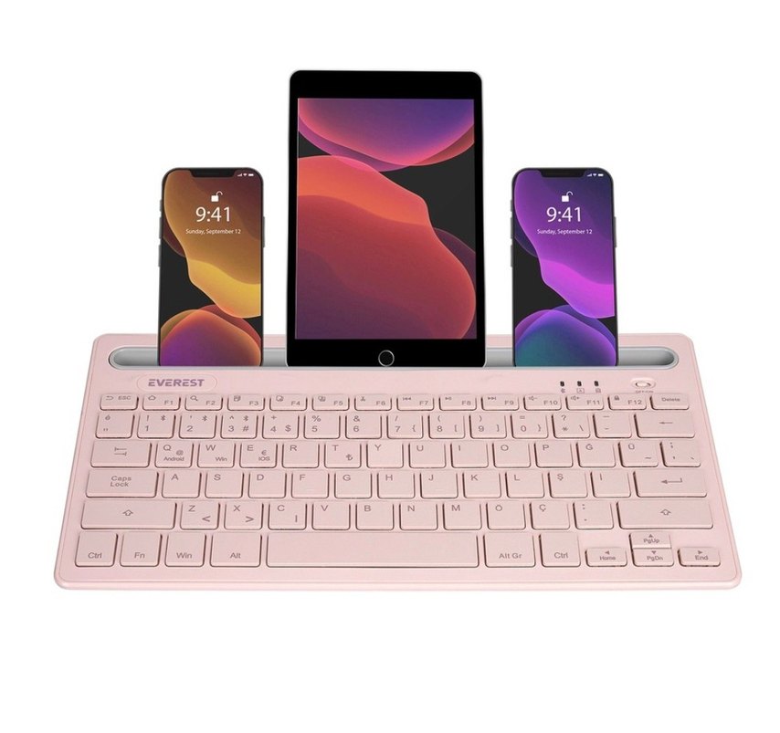 Everest KB-BT82 Bluetooth Q Klavye. Stand olarak kullanılabilmesi çok kolay bir kullanım sunar. Max 100 saate kadar kullanım süresi mevcuttur. Bluetooth bulunan tüm Telefon, Tablet, Televizyon, Bilgisayar gibi cihazlara ile uyumludur.