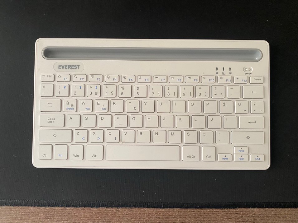 Everest Kb-BT82 Model bluetoothlu klavye, ayni anda 3 cihaza baglanabiliyor, Özellikleri altında yazıyor, sarj girişi var, butun tuslari saglam eksik veya calismayan bir kismi yoktur. Sarj kablosu ile birlikte gonderilecektir