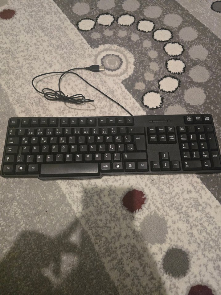 Kablolu siyah klavye, tam boyutlu düzen ve sayısal tuş takımı ile rahat yazım ve USB bağlantısı sağlar. ⌨️