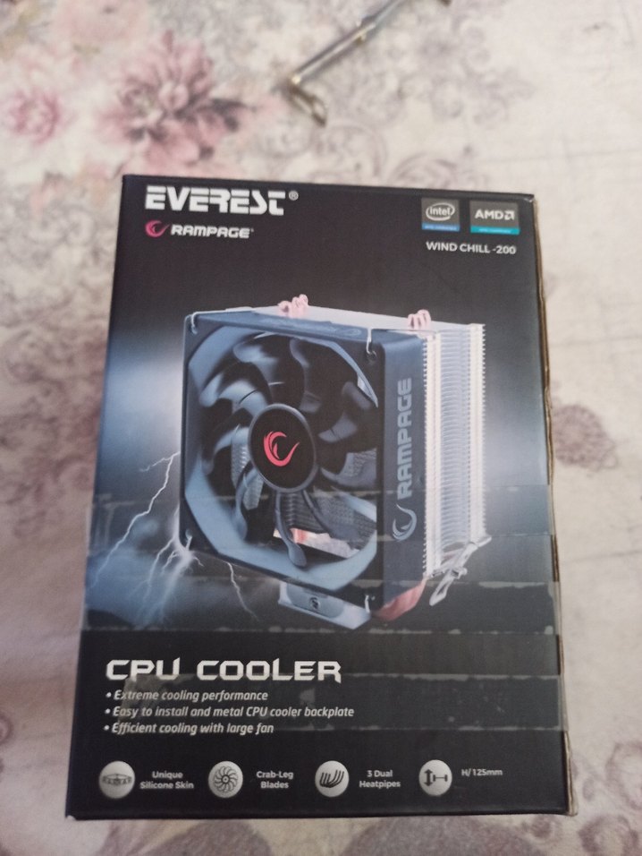 Everest Rampage CPU soğutucu, büyük fan ve metal arka plaka ile etkili soğutma ve kolay kurulum sağlar. Intel ve AMD işlemcilerle uyumludur. ❄️
