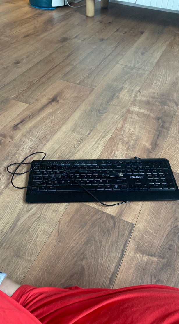 Everest markalı siyah kablolu klavye, tam boyutlu tuş düzeni ve dayanıklı yapıya sahiptir. Rahat kullanım sağlar. ⌨️shirt tuşları basmıyor kullanmaya engel değil