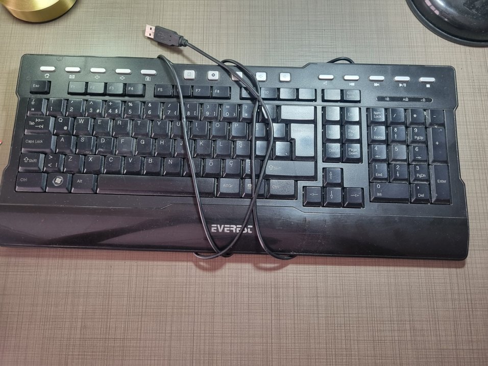 Everest marka siyah kablolu klavye, USB bağlantılı ve tam tuş takımıyla masaüstü kullanımına uygun. ⌨️