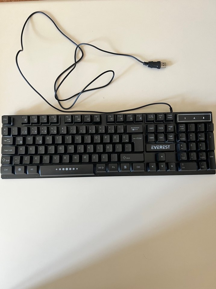 Everest marka siyah USB kablolu klavye, tam QWERTY düzeni ve sağlam bağlantı sunar. Masaüstü kullanıma uygundur. ⌨️
