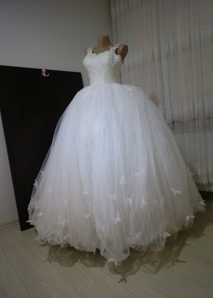 Gelinlik 38 Beden Renk Beyaz harika ötesi bir model Çiğdem Gelinlik Uzel Dikimdir Boy 1 metre 70 Cm Askı kısmıyla birlikte Bel 60 cm İç kısmı Satendir Saten sonrası 4 kat Tüldür ürünün tek eksiği kurutemizleme sorunsuz defosuz duvağı vardır