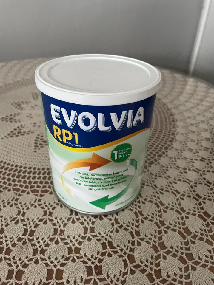 0-6 ay bebekler için uygun, gelişimi destekleyen besinler içeren beyaz kutuda Evolvia RP1 bebek sütü.