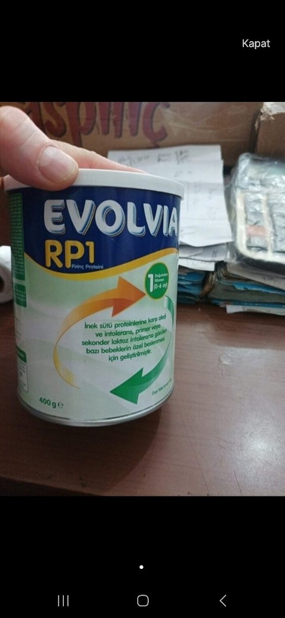 Evolvia RP1 0-6 ay arası bebekler için inek sütü proteini intoleransı ve laktoz intoleransına karşı özel formüle edilmiş 400g paket.