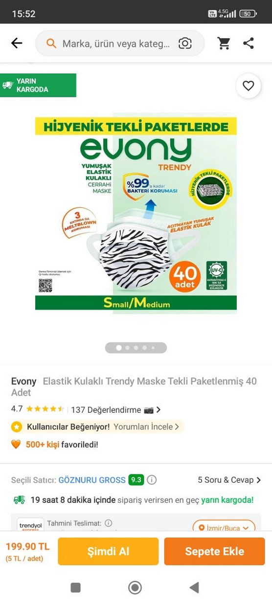 Evony elastik kulaklı maskeler tekli paketlenmiş, 40 adet, küçük/orta beden. Tek tek paketlendiği için çantada taşıması çok kullanışlı. Elimde 4 kutu var isteyene hepsini verebilirim. Kutu adeti 50 lira