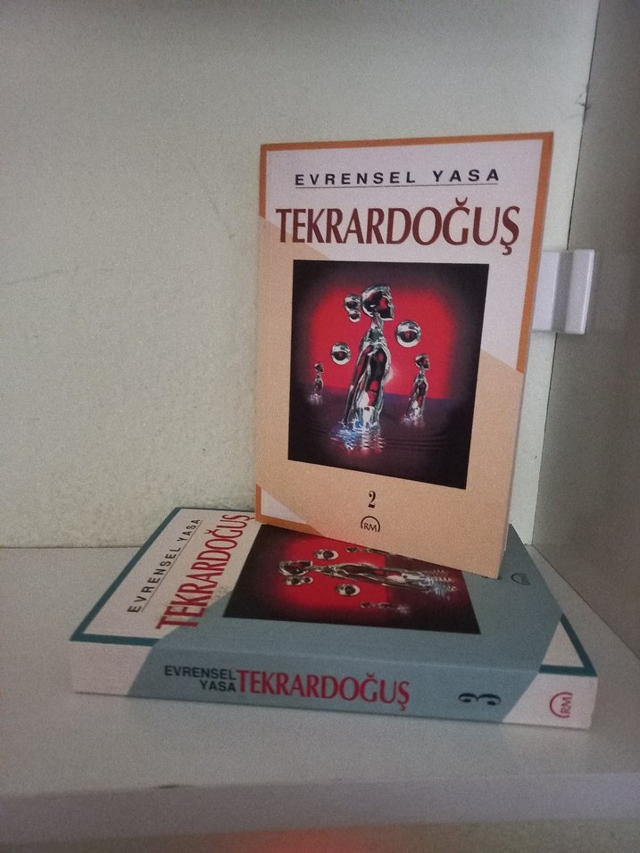 "Evrensel Yasa Tekrardoğuş" kitabı, evrensel yasalar ve yeniden doğuş temalarını işler, sembolik kapak görseli ile sunulur. 2 muhteşem kitap